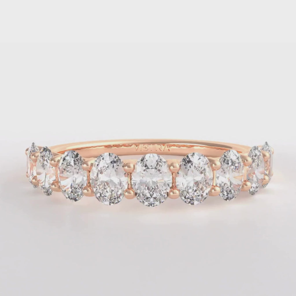 Designed for the modern bride and timeless romantics, this lab diamond ring makes the perfect wedding band, anniversary gift, or stackable ring to complement your engagement ring. The rose gold setting brings warmth and a romantic glow, while each oval diamond is carefully set to maximize sparkle from every angle.